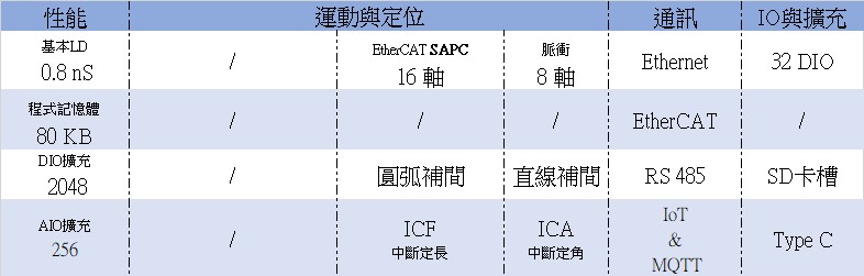 Ethernet/EtherCAT共用埠、2埠 RS485、USB Type-C FHB高速匯流排、Micro-SD卡槽*6、Run/Stop開關支援本地I/O 、高速、進階擴充模組
